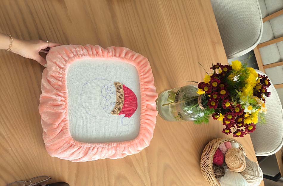 کوسن پانچدوزی مدل بابونه ی دست دوز