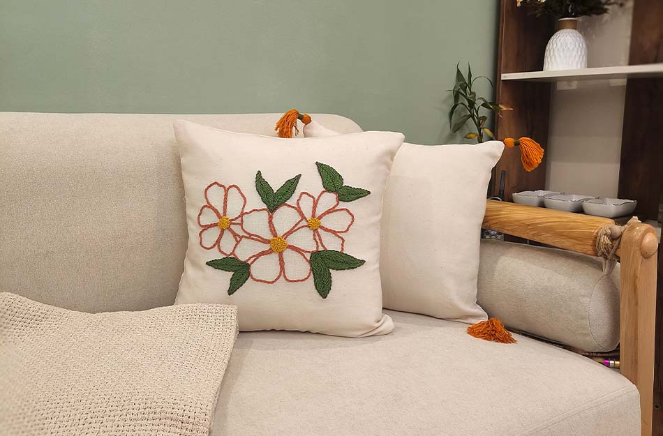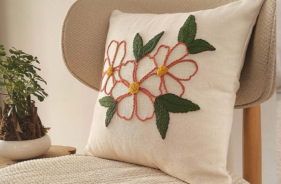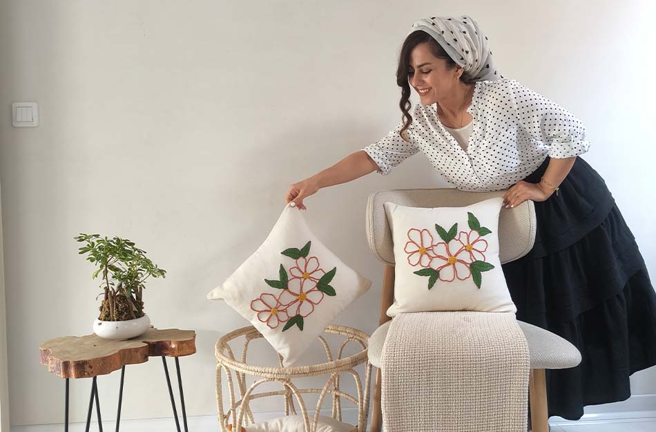کوسن اجرا شده باهنر پانچدوزی مدل گا خطی